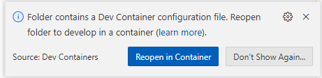 4. Click on Reopen in Container in the popup that appears on the bottom right corner: