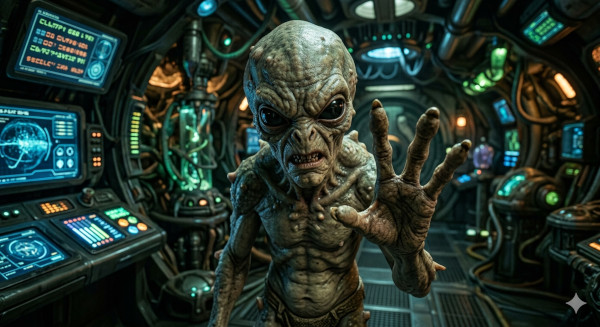 Im Raumschiff angekommen steht Ihnen plötzlich ein Alien gegenĂŒber, spricht Sie in bestem Hochdeutsch an und stellt sich als ášááźáčá